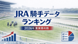 2026年のJRA重賞における騎手別の勝利数を集計(対象期間:2026/1/4〜2/1)。勝率・連対率・複勝率も一覧で整理。馬券検討の参考データとして活用できます(結果を保証する内容ではありません)。