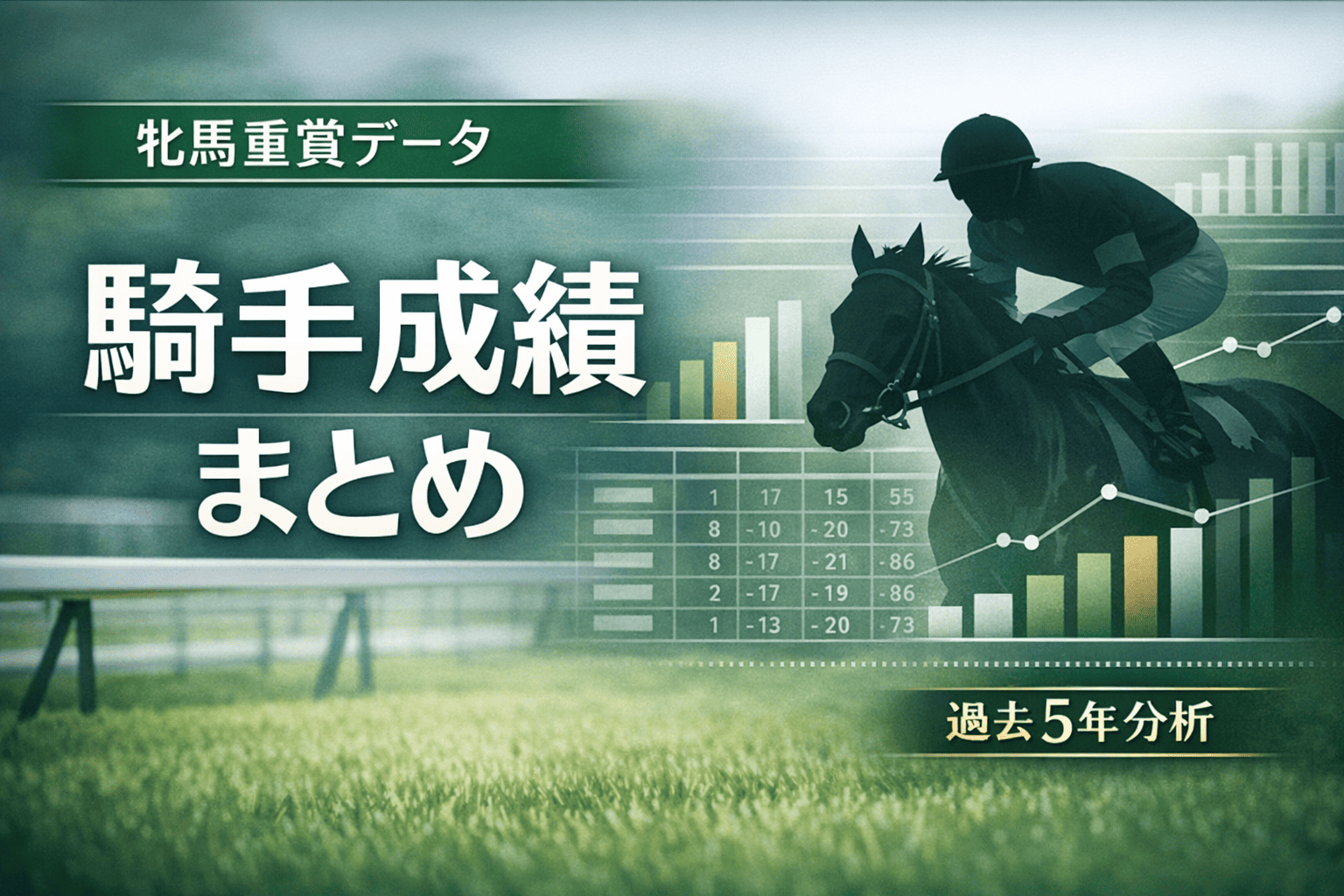 牝馬重賞過去5年データより、騎手別成績を表にまとめました。